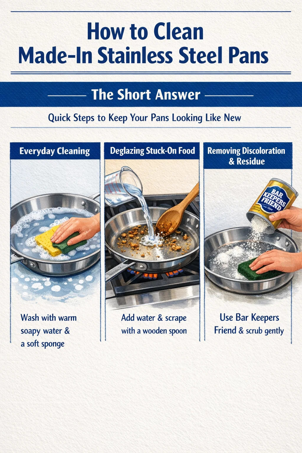 Priusquam in technicas purgandas tribuo, adiuvat ad intellegendum quid in superficie pan tua fiat. Chalybs immaculata nomen habet a rubigine et corrosione resistente, propter chromium oxydatum in superficie formantem. Hic iacuit se ipsum sanare — leviter scalpere et reaedificare — sed decipi potest per dura abrasiva, chlorina, vel diuturna contactu cum cibis acidicis.