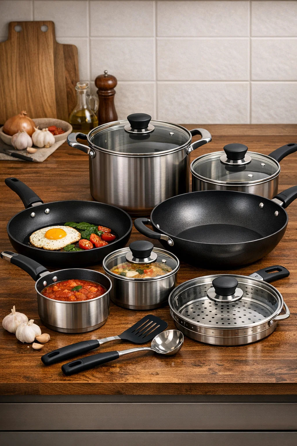 A completum set ex culina crustulum est sicut instrumentum multi-functionalis, continens varias "professionales instrumenta" pro diversis ingredientia et methodis coquendi tractandis. Hoc statuto perfecto, facile potes omnia ex simplici ientaculo ovorum frixorum ad lautam familiam cenam tractare.